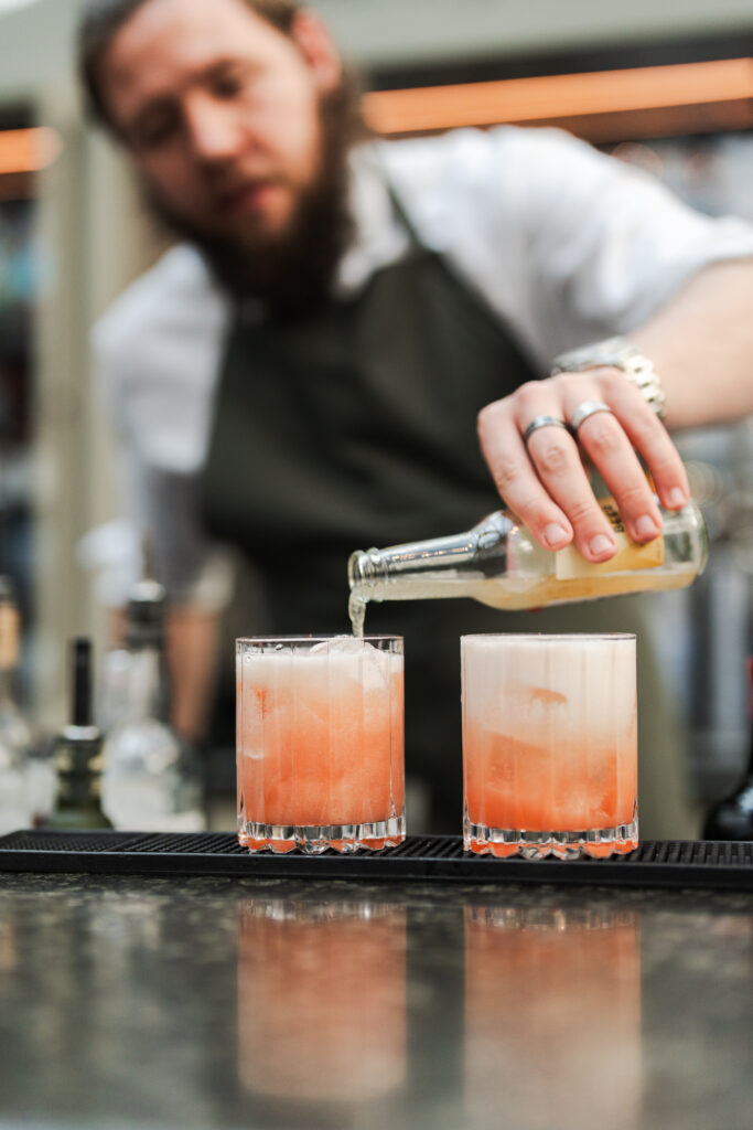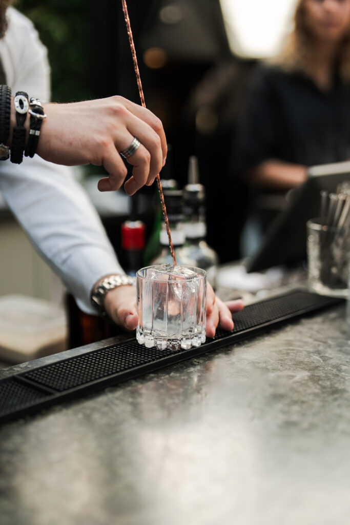 Vi serverer serverer nøje udvalgte og velkomponerede cocktails, bobler, vine avec, øl, vand & et delikat udvalg af snacks & caviar.