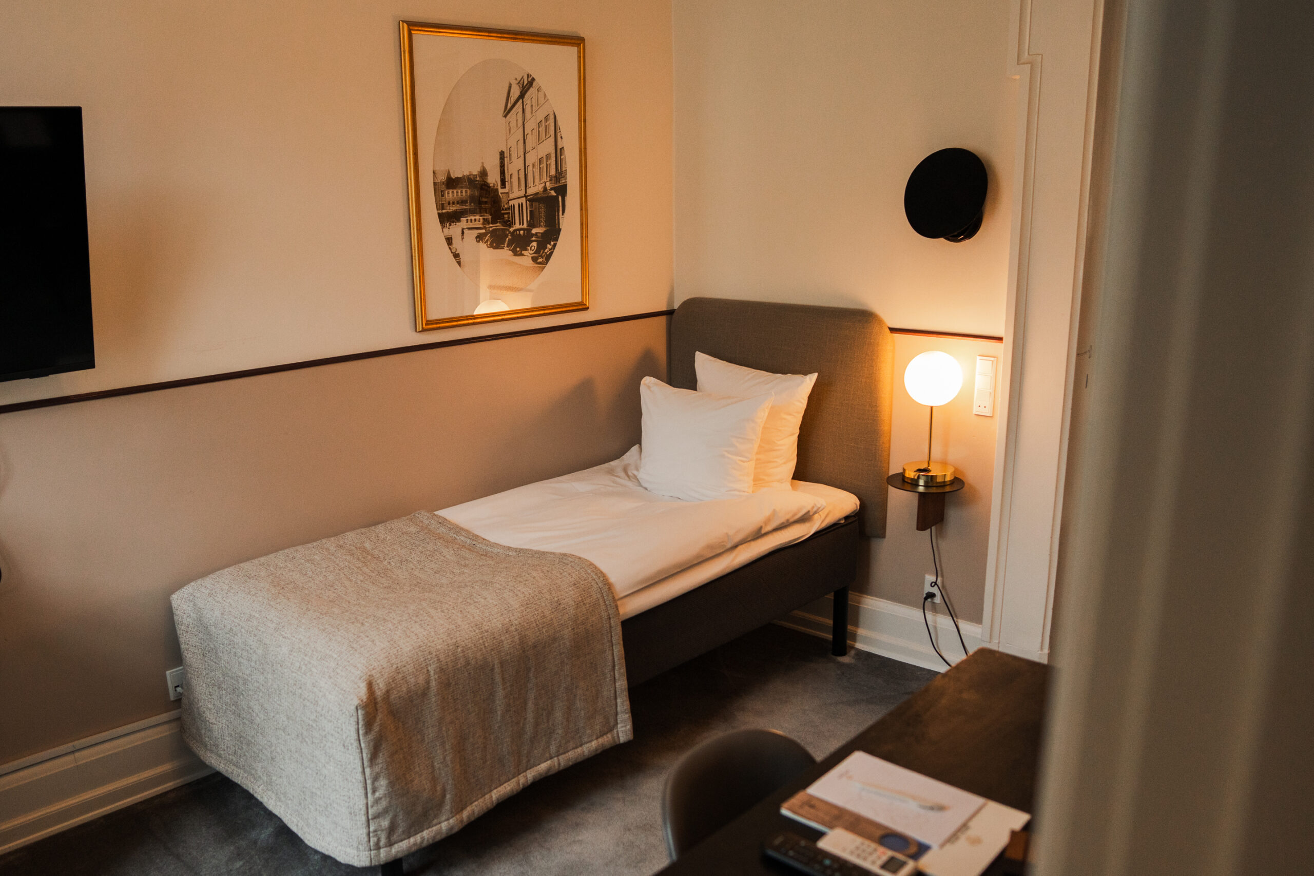 Vores Queen’s Single værelser er ca. 20 m2 i gennemsnit, udstyret med en behagelig enkeltseng og naturligvis med eget bad og toilet samt gratis Wi-Fi.